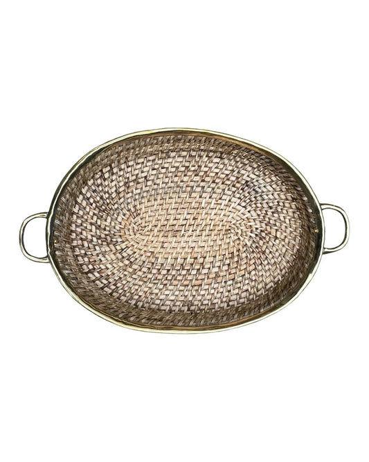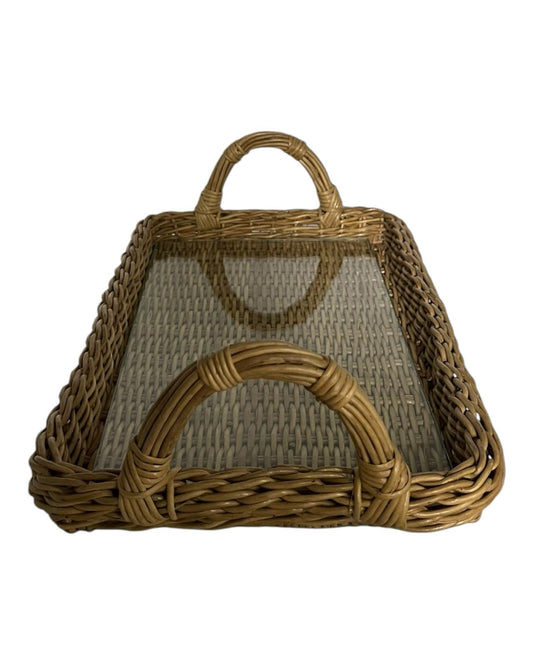 Bandeja Em Madeira E Palha Retangular Com Pé P