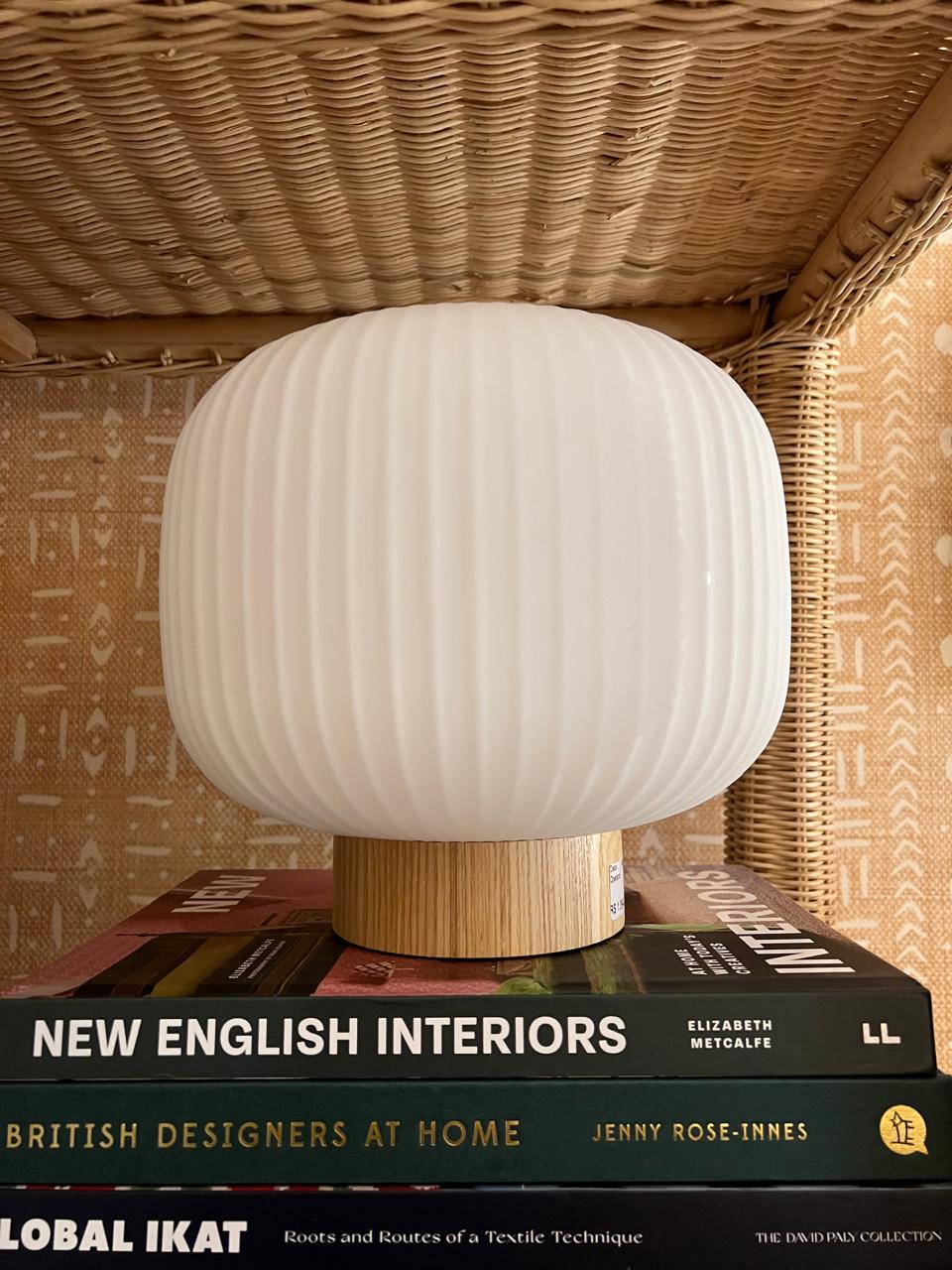 O abajur possui uma cúpula de vidro canelado fosco e uma base de madeira de freixo (ash wood), conferindo-lhe um estilo contemporâneo com um toque natural. O vidro fosco canelado proporciona uma luz suave e difusa, criando um ambiente acolhedor e relaxante. É ideal para adicionar um toque único a mesas laterais, mesas de cabeceira ou escrivaninhas em diversos ambientes internos.