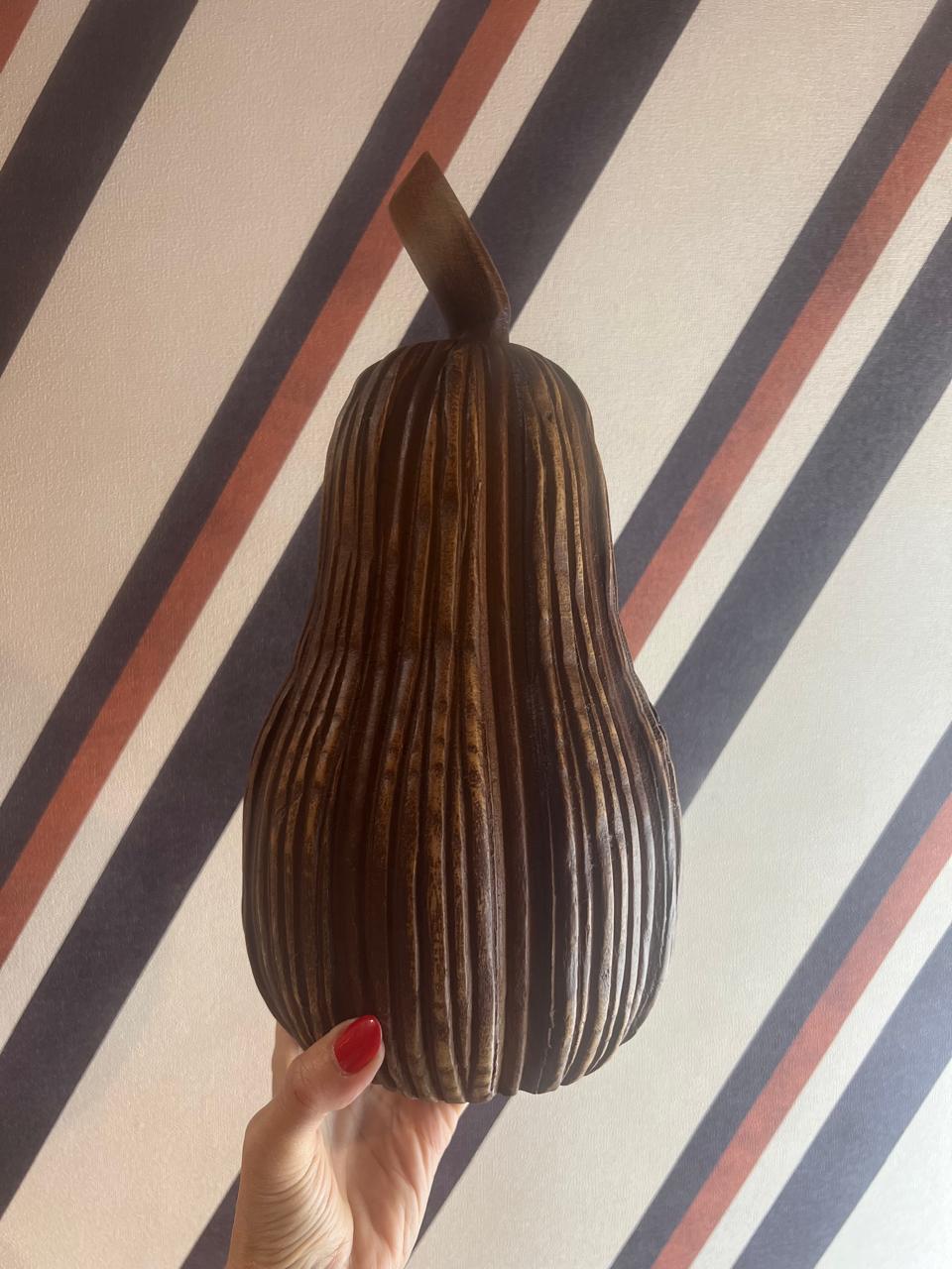Abóbora artesanal em madeira. Peça rústica, traz charme e personalidade à decoração.