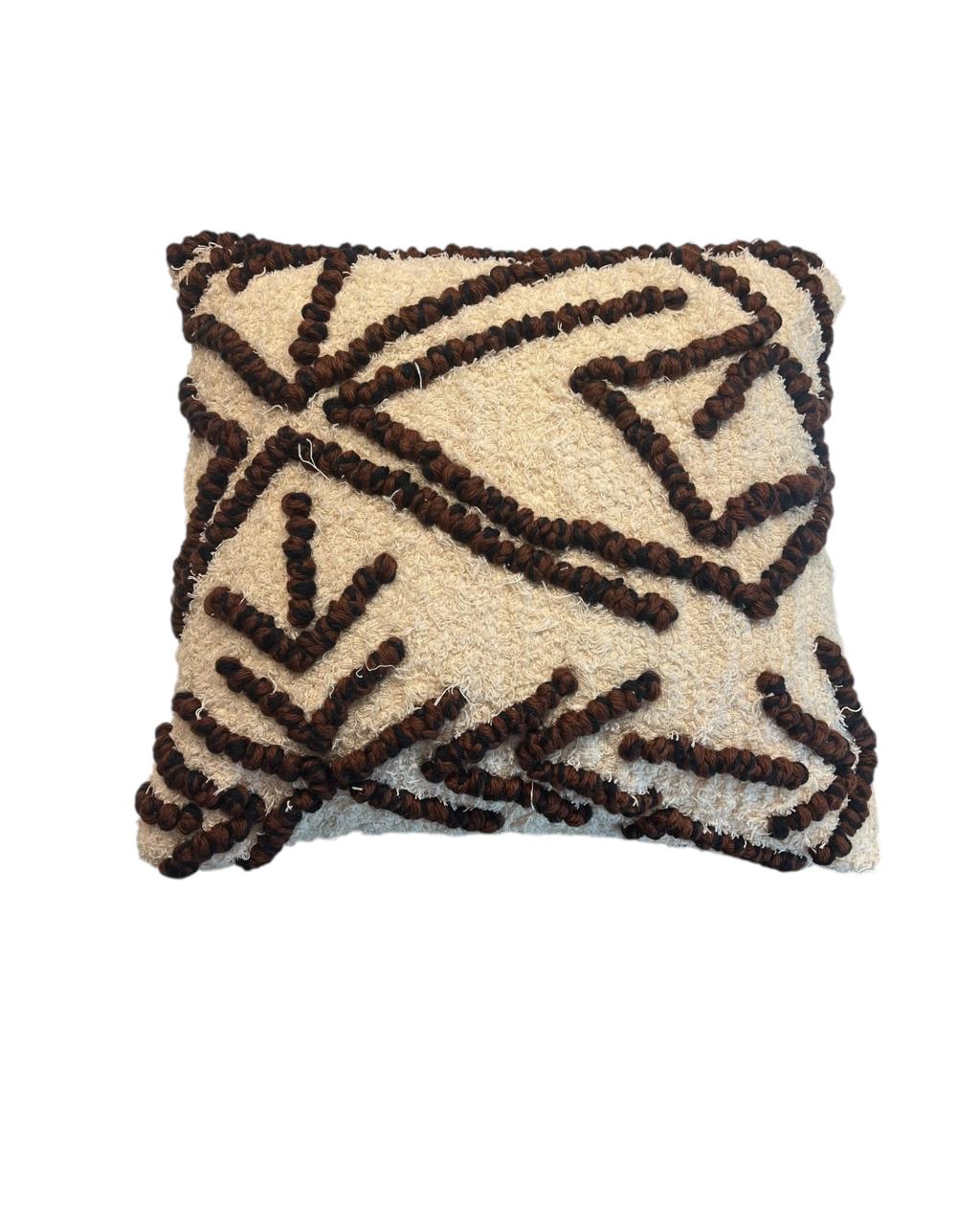 Adicione um toque de estilo rústico-chique e conforto imediato ao seu ambiente com esta deslumbrante almofada decorativa. Combinando uma base macia de cor creme com um padrão geométrico ousado em marrom escuro, esta peça é perfeita para quem busca textura e personalidade na decoração. O design em alto relevo cria um ponto focal visual e tátil único, ideal para sofás, poltronas ou camas. Com um padrão geométrico/tribal em alto relevo que confere um visual moderno e artístico. A superfície felpuda e os detalhes em nódulos (tricô/crochê) proporcionam um toque extremamente macio e convidativo.