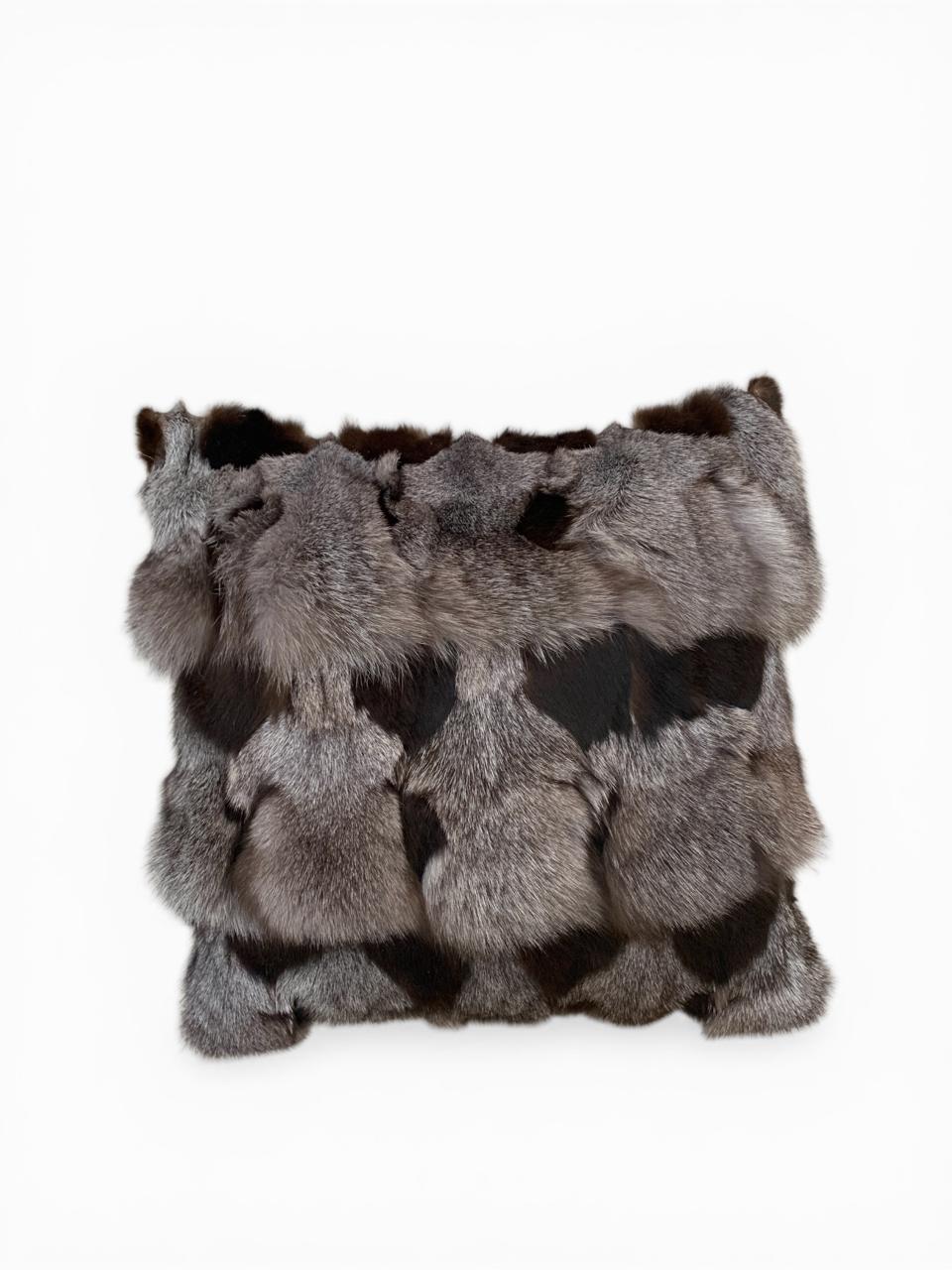 Adicione uma camada de sofisticação e máximo conforto ao seu décor com esta almofada em pelo sintético. A peça apresenta uma montagem artesanal em camadas sobrepostas, criando um efeito visual de profundidade e um toque extremamente sedoso que imita com perfeição a pelagem natural. Com uma paleta de cinza prateado e nuances de marrom profundo, ela é o acessório definitivo para elevar o nível de sofisticação de sofás e poltronas.