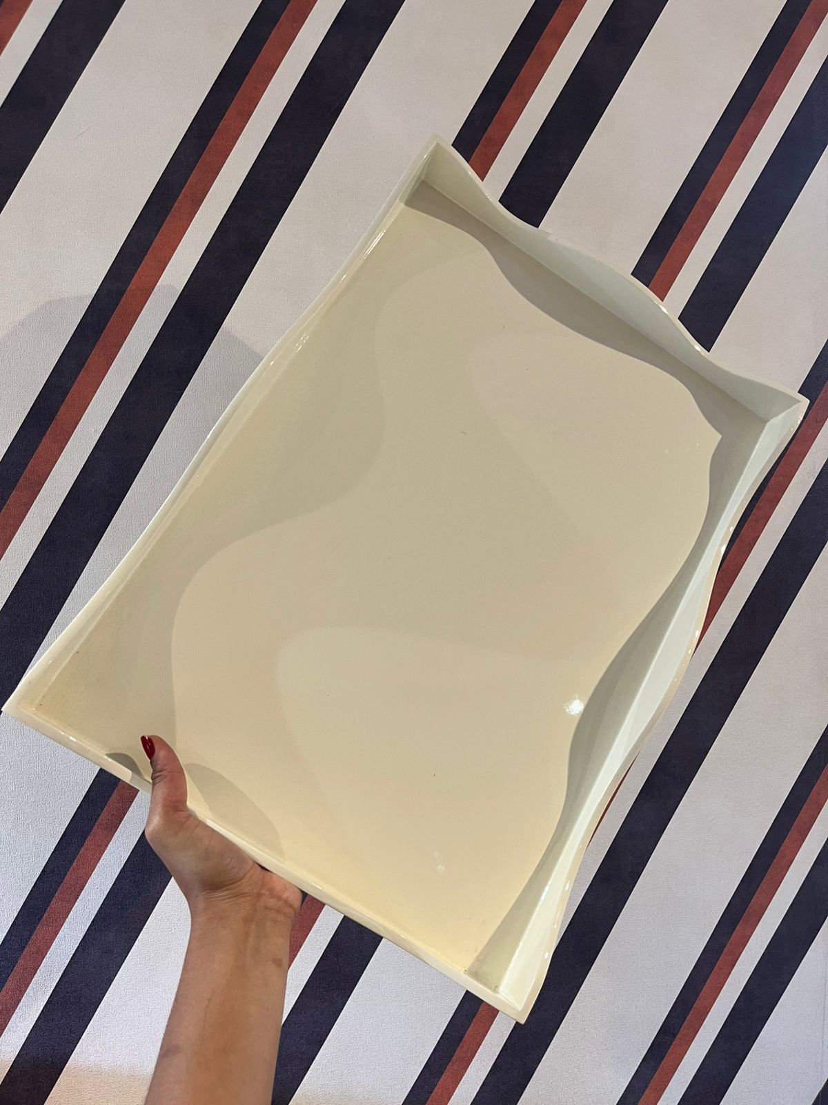 Bandeja exclusiva Casa Operandi feito em madeira com pintura em laca.