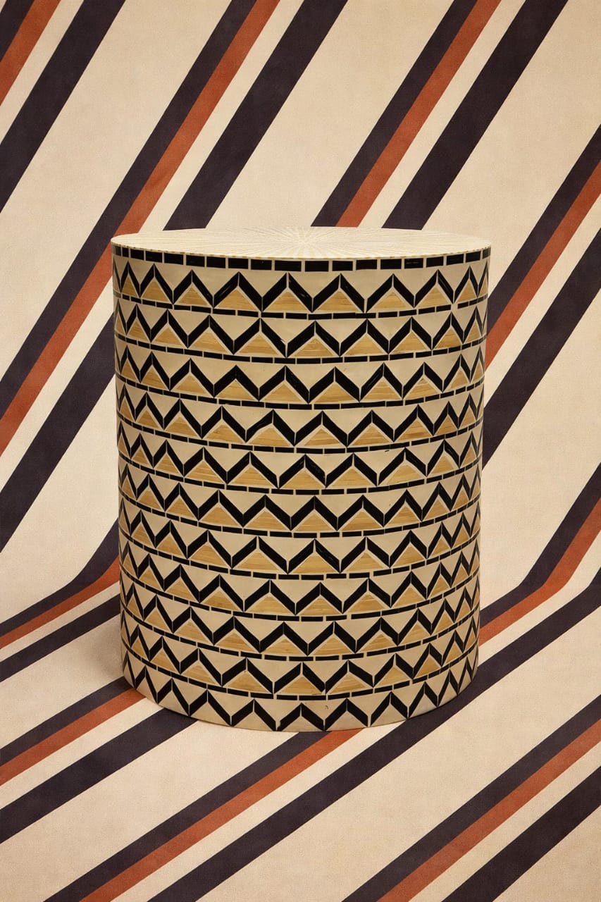 A banqueta em marchetaria é uma peça decorativa sofisticada que combina funcionalidade e arte artesanal. Produzida com técnica de marchetaria, apresenta um elegante trabalho geométrico em tons contrastantes, que valoriza os detalhes e traz personalidade ao ambiente.