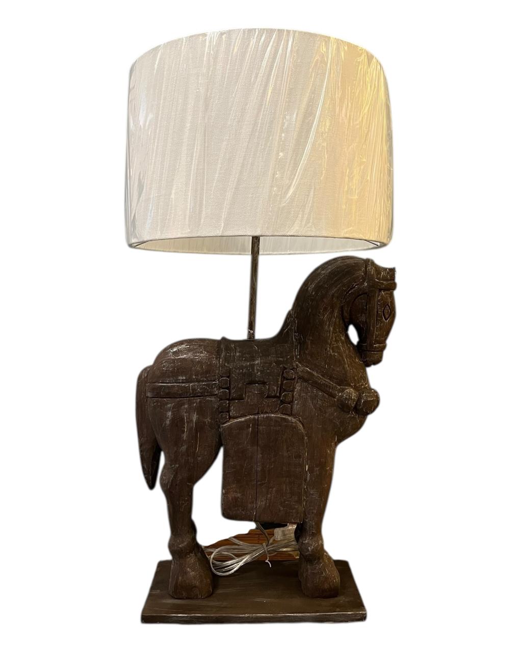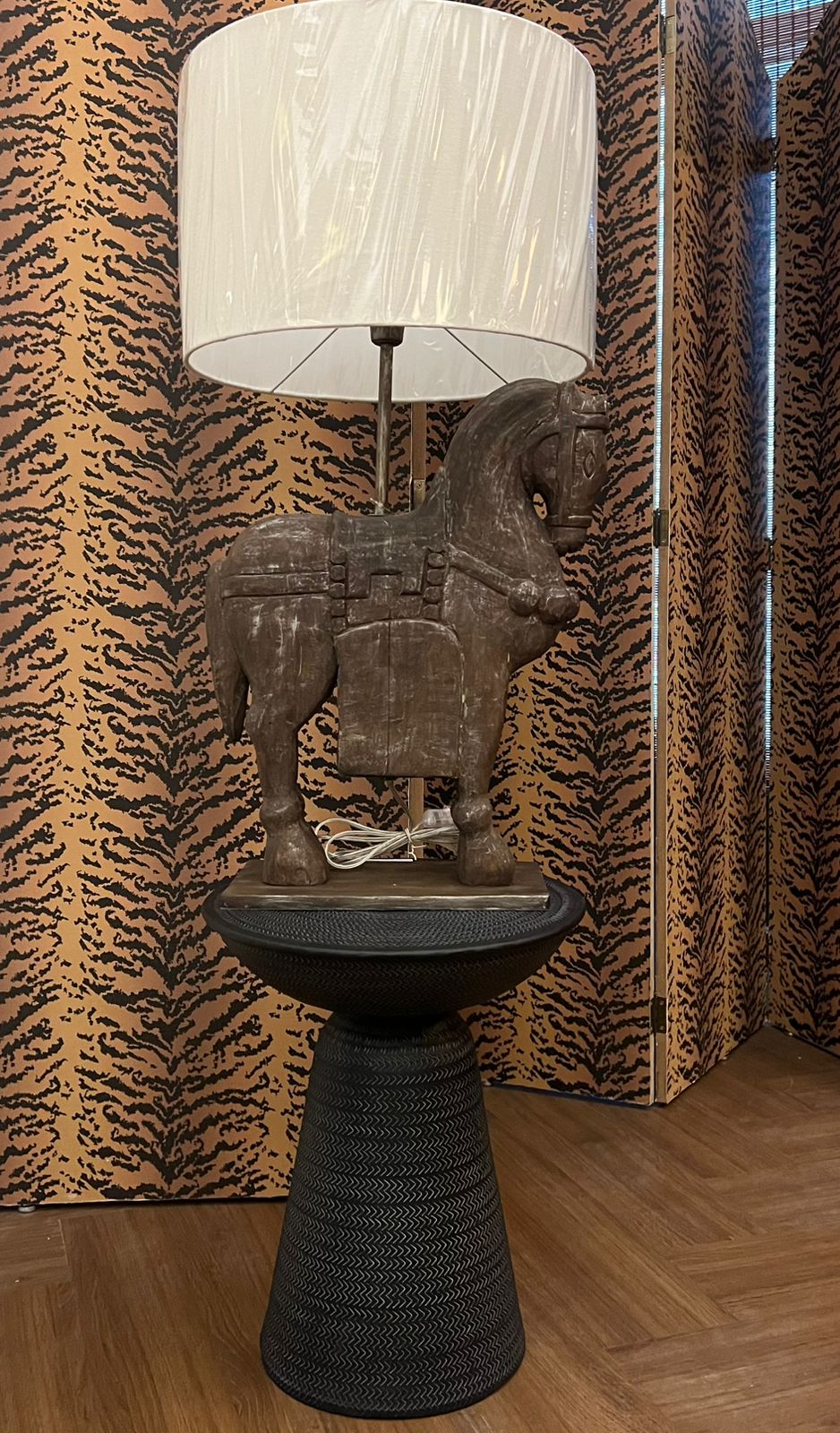 A base esculpida em forma de cavalo confere um visual imponente e realista, tornando-a o ponto focal de qualquer espaço, com um acabamento em madeira escura a peça evoca um estilo clássico e rústico-chique, ideal para salas de estar, escritórios ou quartos com decoração refinada. Combina facilmente com diversos estilos de decoração, desde o clássico e country até o moderno, adicionando uma camada de textura e história ao espaço.