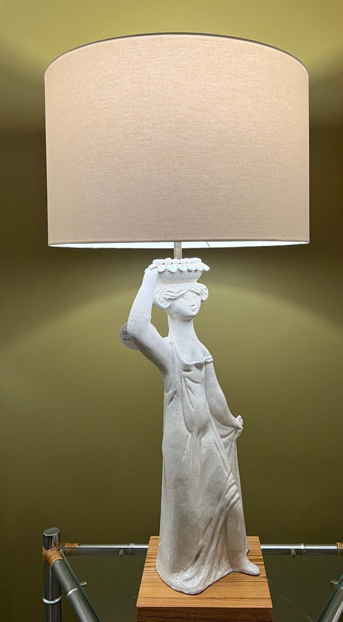 Esta charmosa luminária combina arte e iluminação em uma única peça elegante. Com base em formato de escultura clássica feminina, a peça evoca a estética das antigas estátuas gregas, transmitindo sofisticação e serenidade.