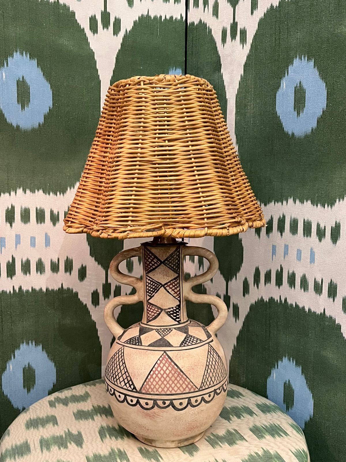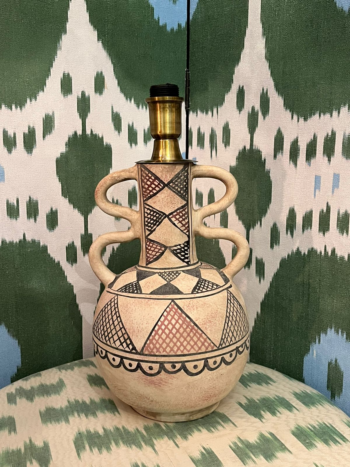 Adicione um toque de autenticidade e charme à sua decoração com esta exclusiva base de abajur em cerâmica Saramenha. Inspirada na rica cultura berbere do Norte da África, esta peça única combina o rústico e o sofisticado de forma harmoniosa. Esta base de abajur é perfeita para criar um ambiente acolhedor e cheio de personalidade em salas de estar, quartos ou escritórios, contando uma história de tradição e design.