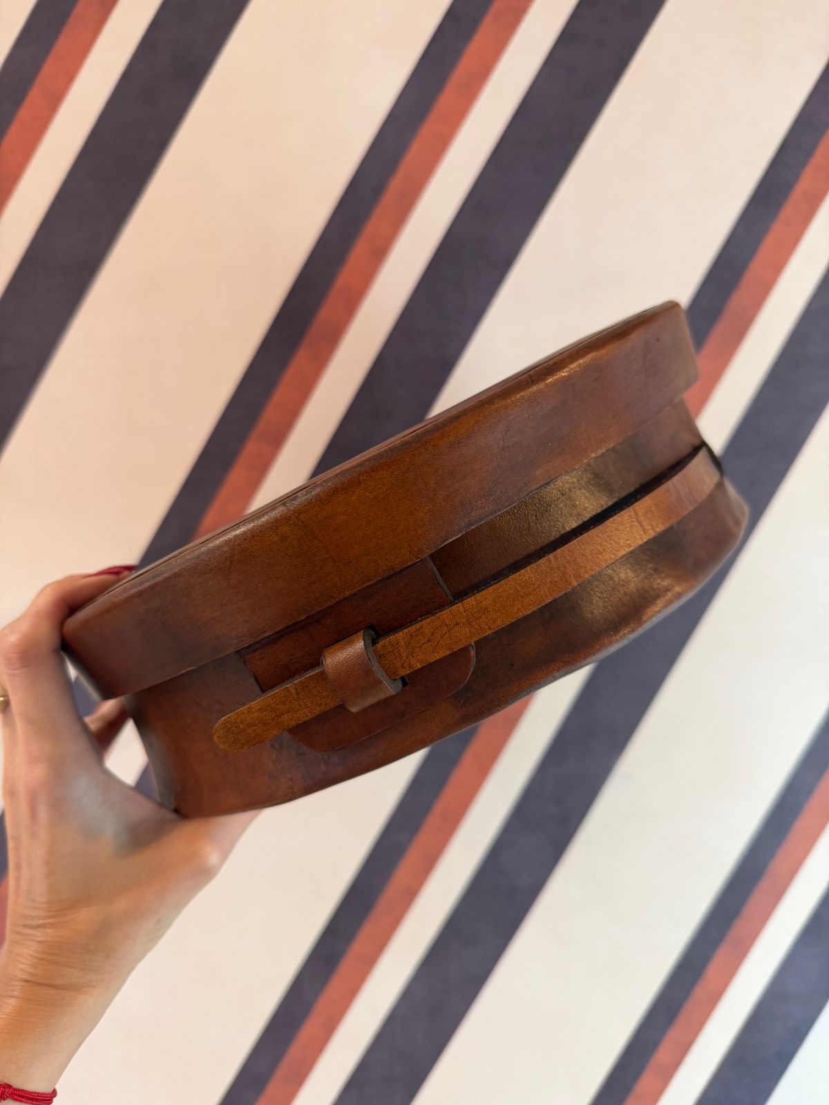 Eleve o nível da sua organização com esta deslumbrante caixa redonda, confeccionada em couro legítimo de alta qualidade na rica tonalidade marrom.