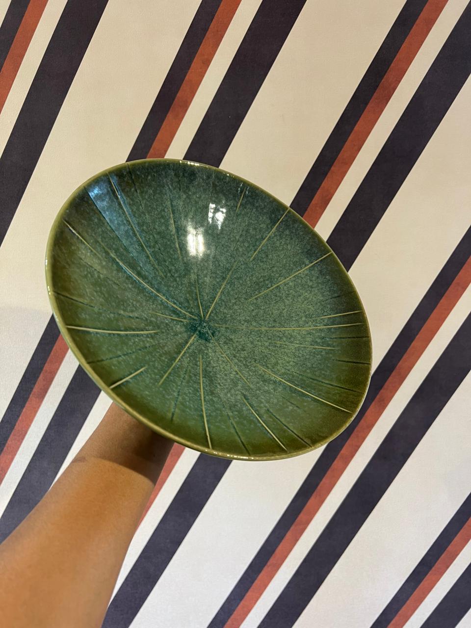 Adicione um toque de natureza e sofisticação à sua decoração com este deslumbrante centro de mesa de cerâmica, com um design orgânico e contemporâneo, esta peça se destaca pelo seu formato que remete às nervuras de uma vitória-régia. O acabamento em esmalte verde vibrante, confere textura e profundidade, capturando a luz e criando um ponto focal elegante em qualquer ambiente. A variação de tons de verde garante exclusividade a cada peça.