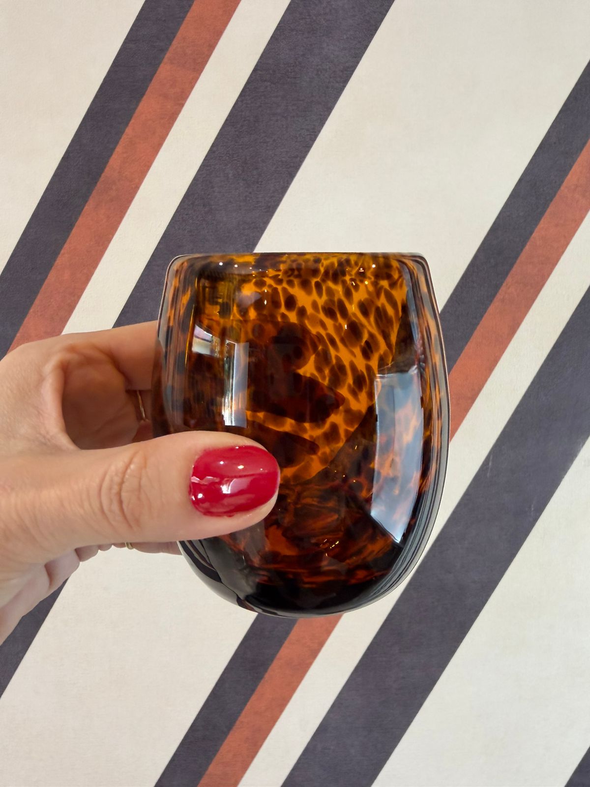 Adicione um toque de elegância e sofisticação à sua mesa com o nosso exclusivo copo de vidro com estampa de tartaruga, inspirado no clássico e cobiçado padrão tortoise shell, este copo combina design moderno com um charme vintage que nunca sai de moda. Este copo versátil é a escolha perfeita para servir suas bebidas favoritas com estilo inigualável. Apresenta um rico padrão marmorizado em tons de âmbar, marrom e preto, que captura a luz de forma deslumbrante e adiciona profundidade à sua mesa.