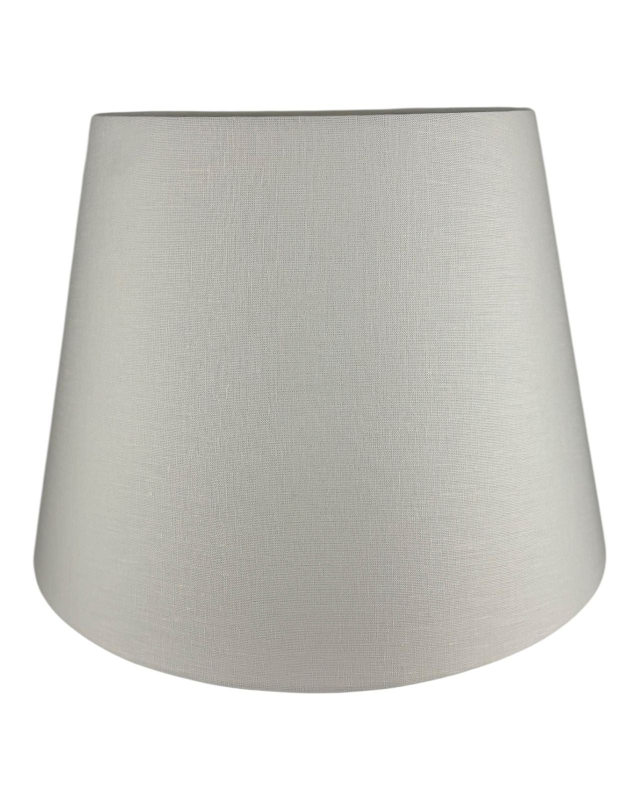 Cúpula de abajur em linho com formato cônico na cor off-white.