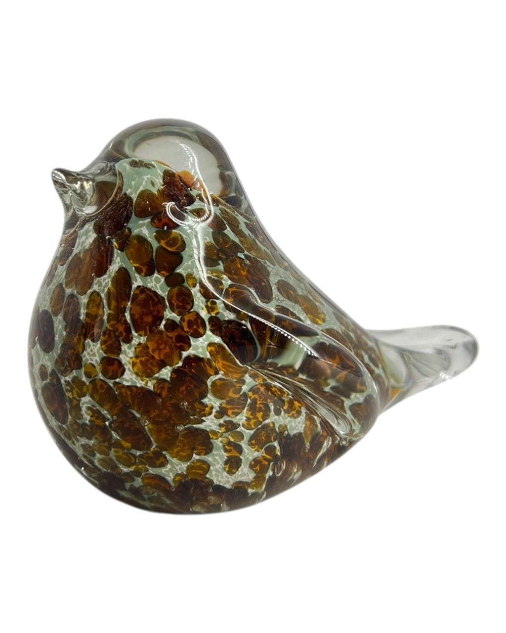 Este delicado pássaro decorativo é uma peça artesanal em vidro murano, combinando tons âmbar, marrom e dourado sobre base transparente cristalina. Seu design orgânico e acabamento suave refletem a luz de forma encantadora, criando um toque de elegância e sofisticação em qualquer ambiente.