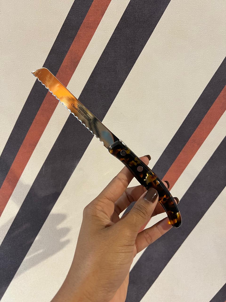 Linda faca para pão com cabo no estilo tartaruga.