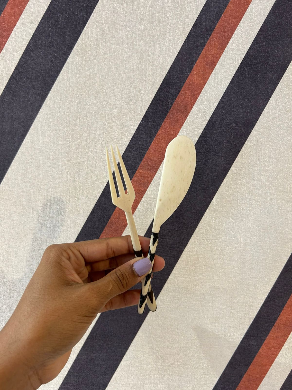 Peças únicas que unem tradição, beleza natural e trabalho manual refinado. Produzidas a partir de osso cuidadosamente polido, elas apresentam acabamento liso, brilho suave e tonalidades naturais que variam entre marfim, creme e nuances orgânicas, características que as tornam exclusiva. O detalhe artesanal no cabo confere um toque artístico e cultural, valorizando ainda mais a peça.