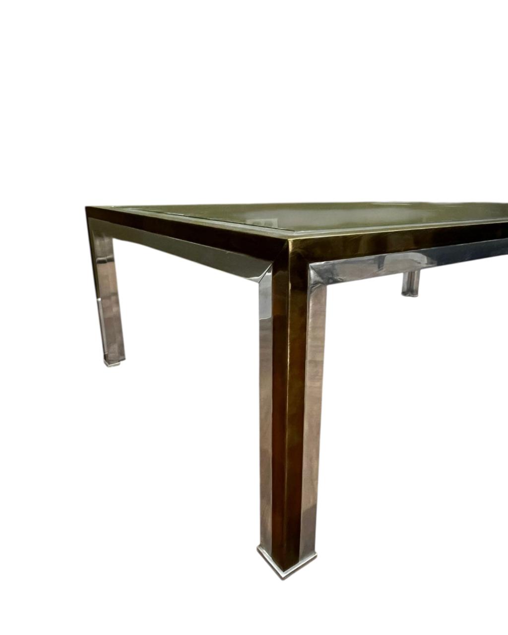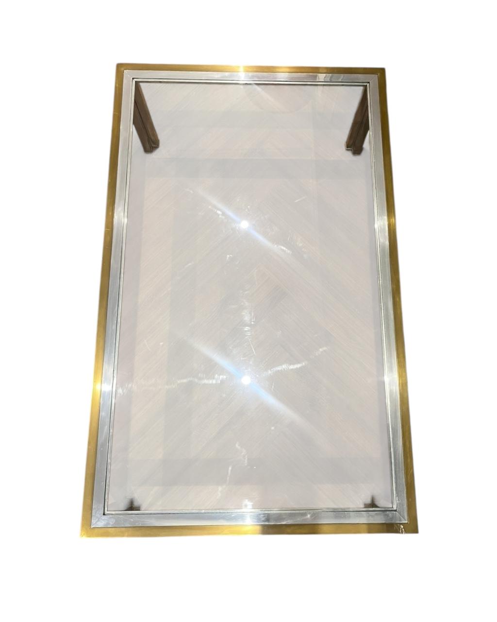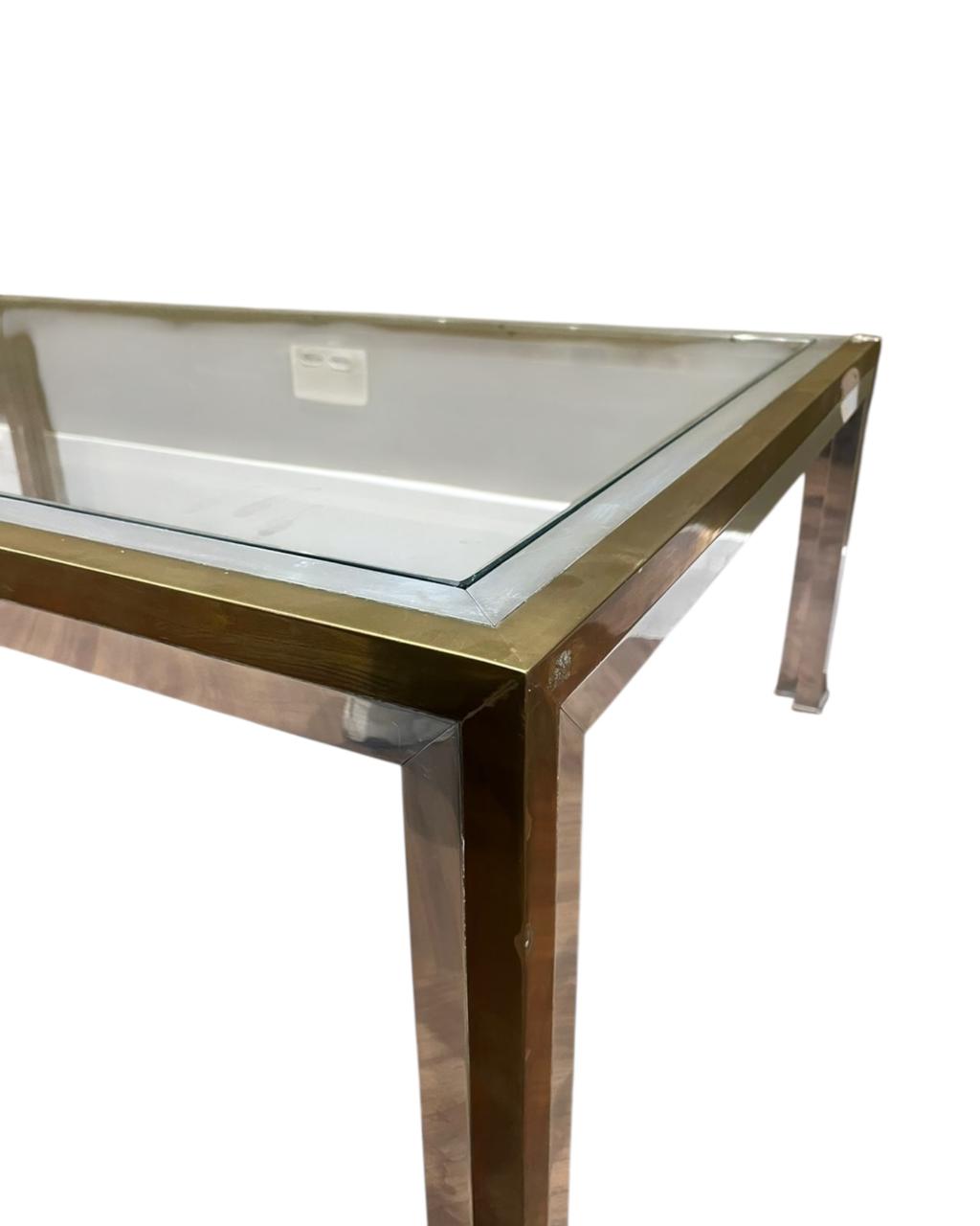 Dê um toque de sofisticação à sua sala com esta mesa de centro icônica. Com uma estrutura robusta em metal cromado e detalhes em latão dourado, ela combina perfeitamente com ambientes modernos, clássicos ou retrô. O tampo em vidro garante leveza visual, ideal para não "pesar" no ambiente.