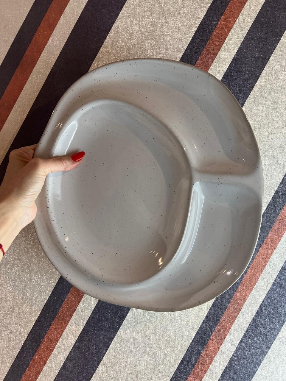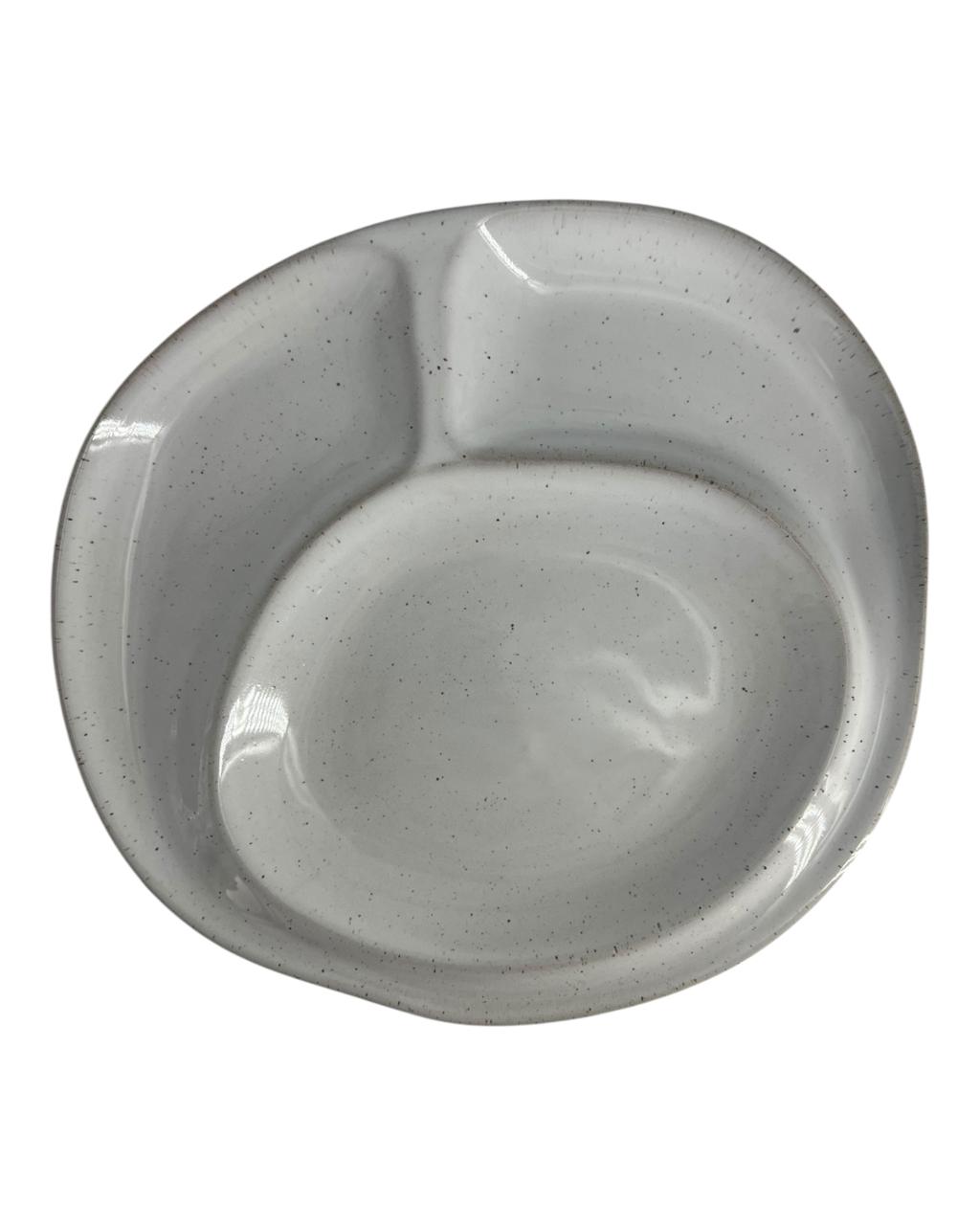 Sirva com charme e sofisticação usando nossa petisqueira de cerâmica com acabamento salpicado. Com três compartimentos, ela é ideal para organizar e apresentar petiscos, molhos e acompanhamentos de forma elegante na sua mesa. O design orgânico e a textura granulada em tons de creme adicionam um toque artesanal e moderno, tornando cada peça única e perfeita para qualquer ocasião, de encontros casuais a recepções especiais.