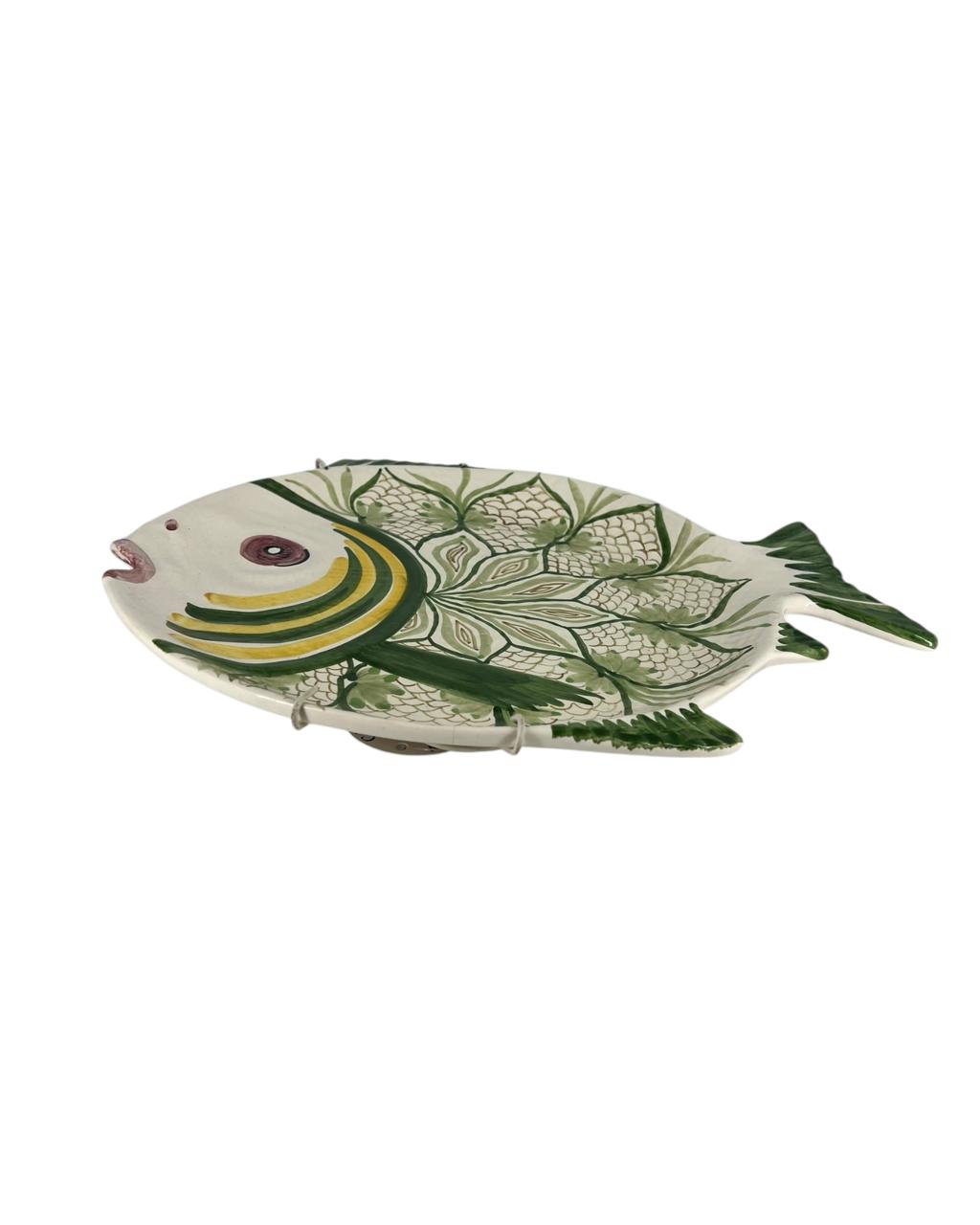Adicione um toque de charme costeiro e elegância rústica à sua decoração com esta deslumbrante travessa de cerâmica em formato de peixe. Perfeita para quem ama o tema do mar e peças artesanais exclusivas. Peça única, pintada à mão com riqueza de detalhes. Os padrões elaborados em tons de verde, amarelo e branco criam um visual vibrante e sofisticado, lembrando escamas ou motivos florais. Use-a como um ponto focal na mesa de jantar, aparador, ou até mesmo pendurada na parede para uma decoração com inspiração praiana.