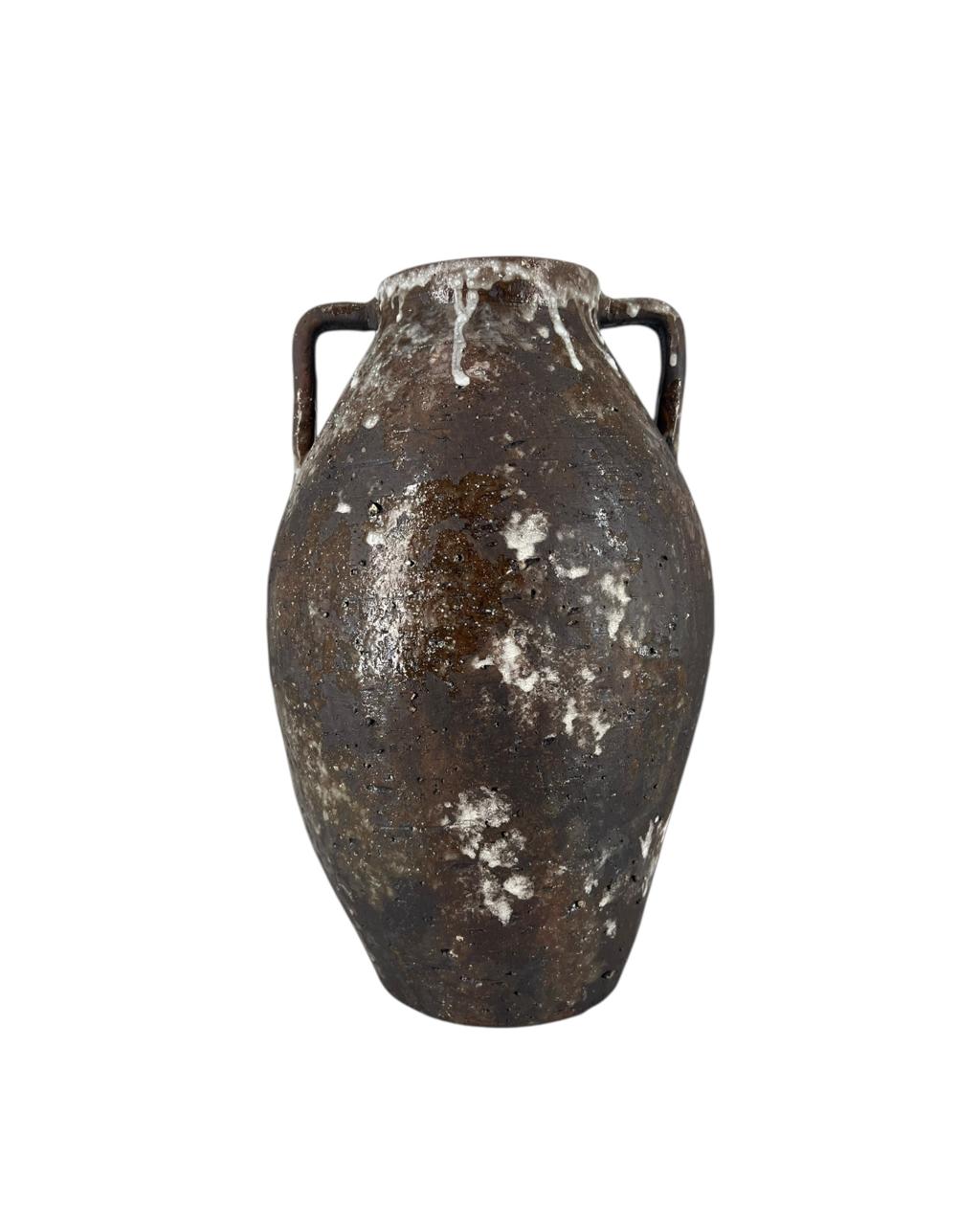 Adicione um toque de elegância rústica à sua decoração com este deslumbrante vaso de cerâmica artesanal. Com uma forma clássica de ânfora e duas alças laterais, ele combina o encanto do design antigo com uma estética moderna e orgânica.