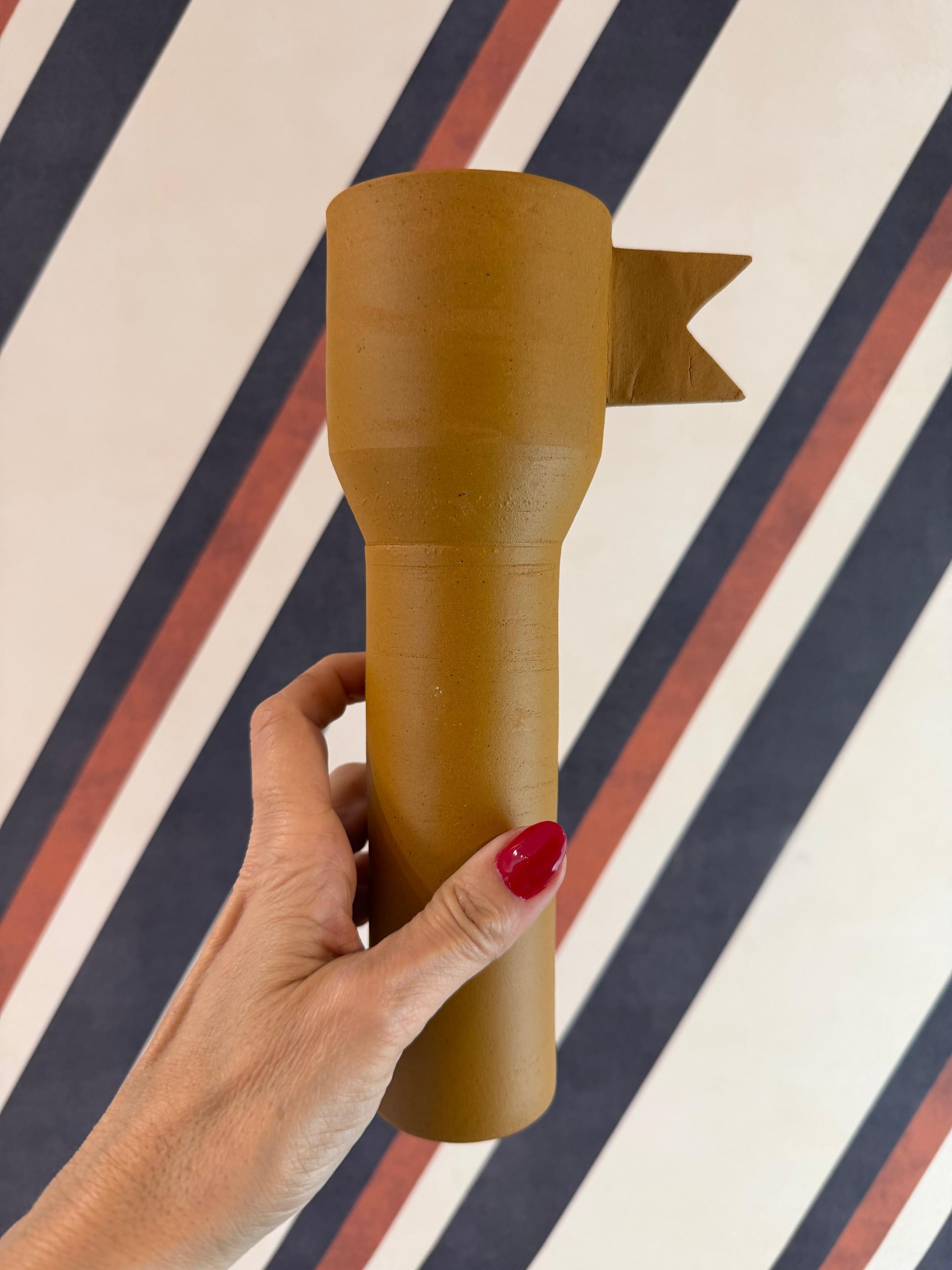 Com formas orgânicas e acabamento artesanal, este vaso une o charme do feito a mão com o design moderno. Os tons terrosos trazem aconchego e autenticidade, compondo ambientes sofisticados e cheios de personalidade.